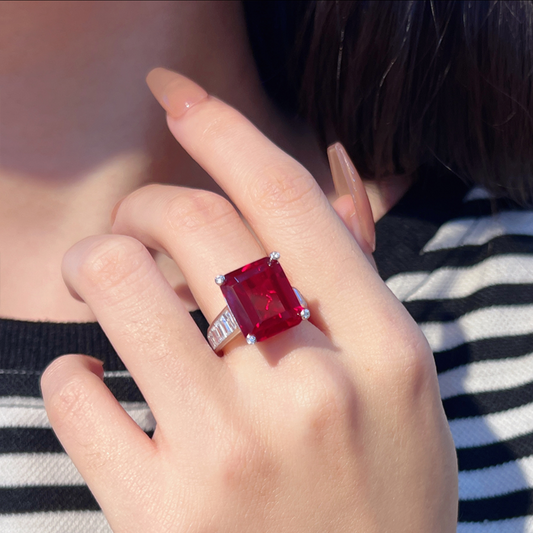 Oversized Emerald Cut Red Ruby Solitaire Ring