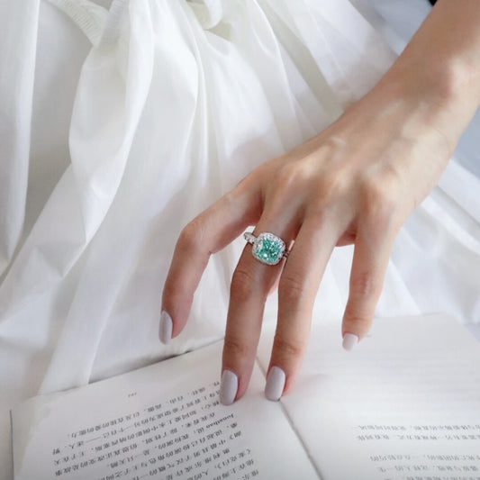 Cushion Cut Neon Blue Paraiba Cocktail Ring